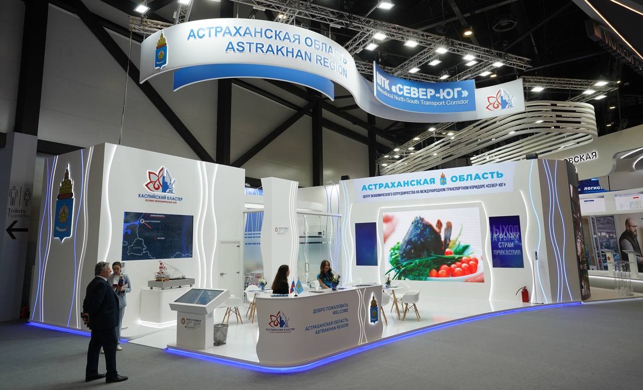Акцент выставочного стенда сделан на развитии транскаспийского маршрута международного транспортного коридора «Север-Юг» и укреплении торгово-экономических отношений со странами Каспийского региона и соседних с ними государств: Индии, Юго-Восточной Азии, арабских государств и Африки. Посетители стенда могут узнать о потенциале совместных проектов, в том числе на территории ОЭЗ Каспийский кластер (объединяет ОЭЗ «Лотос» и портовую ОЭЗ), а также развитие дипломатических, культурных, туристических и образовательных связей.