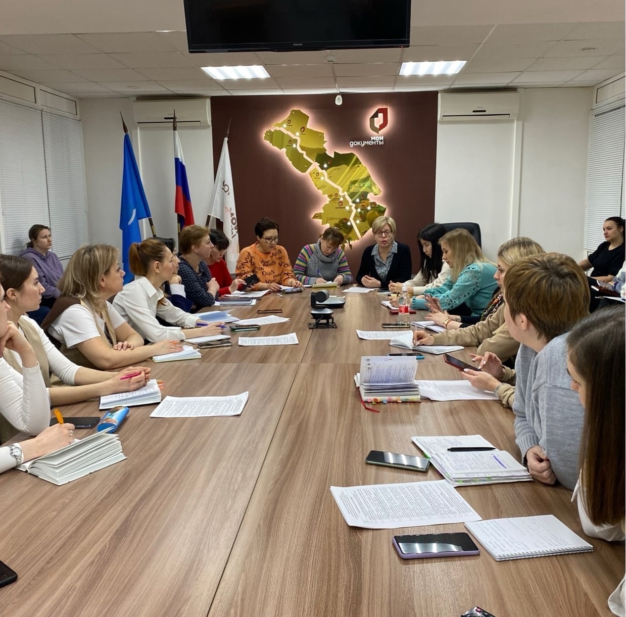 Программа этого учебного дня была посвящена предоставлению услуг в сфере соцподдержки населения в связи с изменениями законодательства в 2023 году и расширением перечня оказываемых услуг на базе МФЦ.
