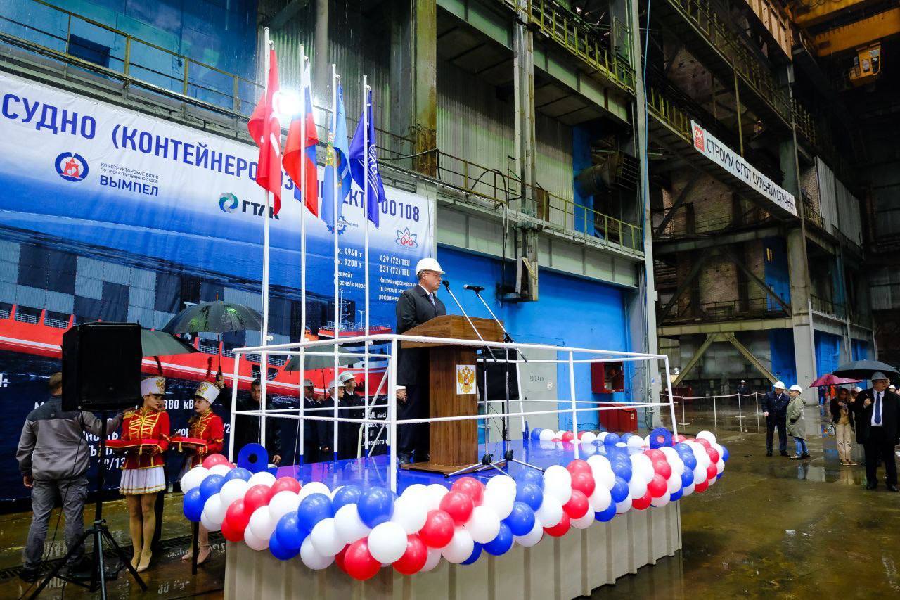 В церемонии закладки головного судна проекта 00108 на производственной площадке судостроительного завода «Лотос» Южного центра судостроения и судоремонта (ЮЦСС, входит в ОСК) сегодня приняли участие губернатор Астраханской области Игорь Бабушкин, председатель Совета директоров АО «Объединённая судостроительная корпорация» (ОСК) Георгий Полтавченко, генеральный директор АО «Государственная транспортная лизинговая компания» (ГТЛК) Евгений Дитрих, руководитель Федерального агентства морского и речного транспорта (Росморречфлот) Захарий Джиоев и другие почётные гости.