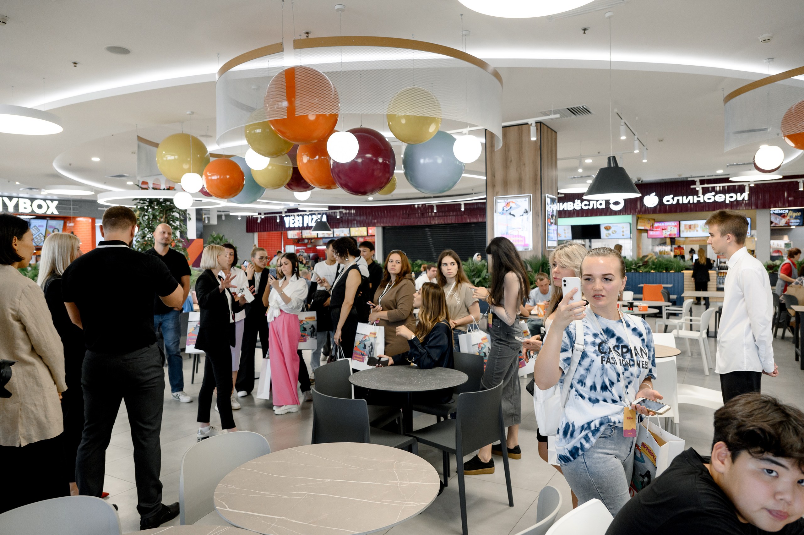 Особое внимание было уделено обновленному фудкорту и общим зонам. Фудкорт стал не только местом для питания, но и комфортной зоной отдыха для взрослых и развлечений детей. Было создано разнообразие зон с использованием растений, разной мебели и последних дизайнерских наработок.