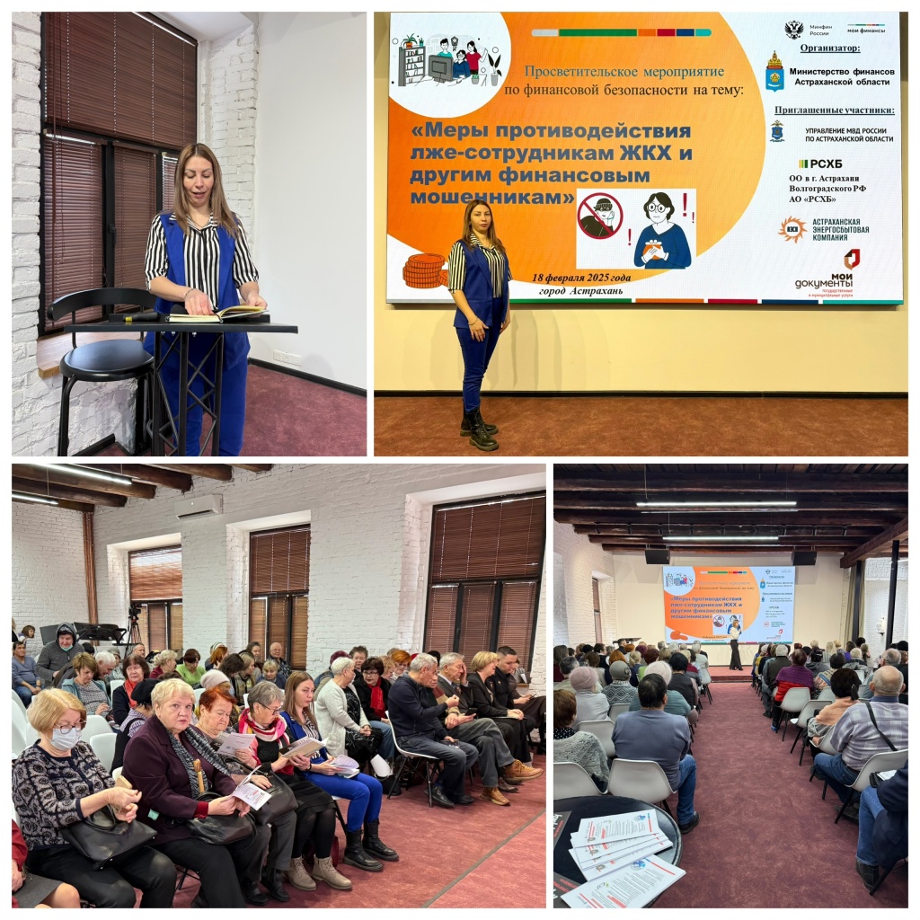 В связи с участившимися случаями мошенничества, в том числе в отношении лиц «серебряного возраста», министерством финансов Астраханской области 18.02.2025 на базе центра повышения квалификации «Платформа» проведено мероприятие по финансовой грамотности на тему: «Меры противодействия лже-сотрудникам ЖКХ и другим финансовым мошенникам».