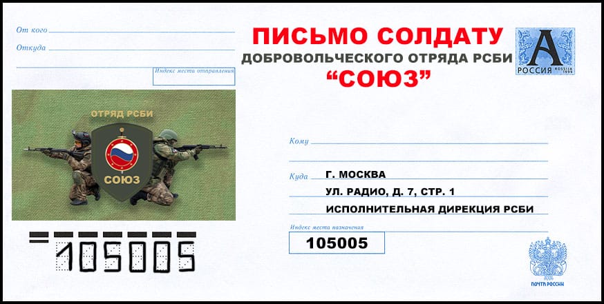 Будут приниматься письма и рисунки для бойцов добровольческого отряда РСБИ "Союз", который отправился в зону Специальной военной операции.