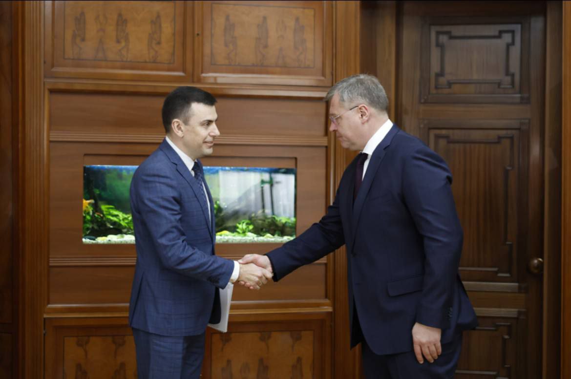 Сегодня губернатор Игорь Бабушкин провёл рабочую встречу с руководителем управления Россельхознадзора по Ростовской, Волгоградской и Астраханской областям и Республике Калмыкия Владиславом Шичаниным.
