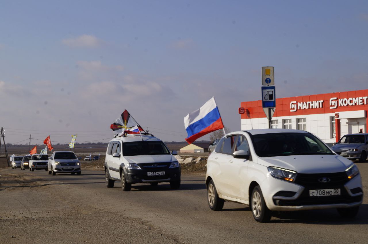 В поселке Лиман Астраханской области прошел автопробег «Zа мир», приуроченный к празднованию Дня защитника Отечества.