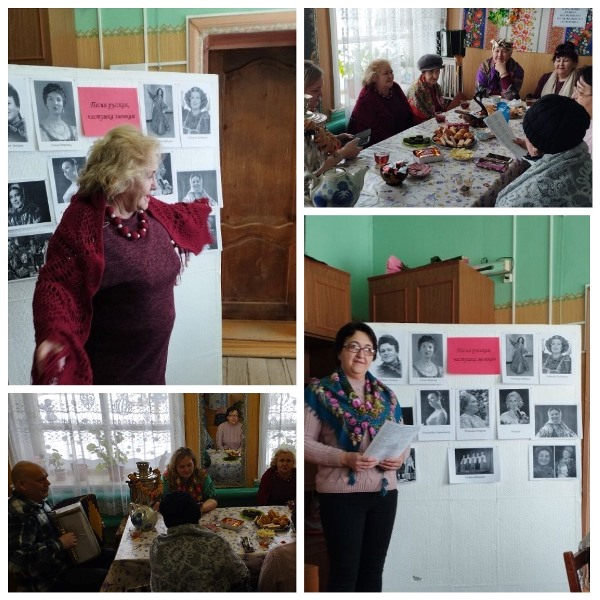 За приятным чаепитием гости посиделок пели под гармонь русские народные песни, исполняли частушки. Присутствующие узнали о том, когда появились частушки, какие разновидности частушек бывают, а так же познакомились с творчеством М. Мордасовой и Л. Руслановой.