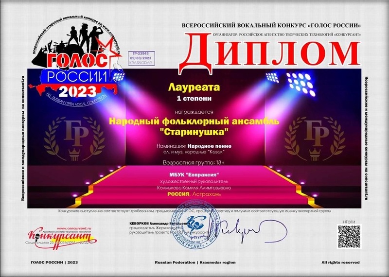 Приволжский коллектив принял участие во Всероссийском вокальном конкурсе «Голос России» с народной песней Казак в номинации «Народное пение».