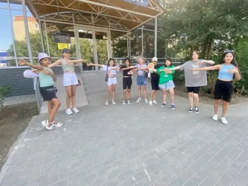"Ученицы седьмых-девятых классов лицея № 1 им. А.П. Гужвина г. Камызяка и КСОШ № 4, которые занимаются в кружке современного танца "Эй, девчонки!", - пояснила Светлана Испулатовна, - вышли на площадку возле нашего учреждения и устроили флешмоб".