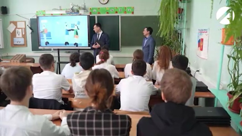 Фото: Астрахань 24 Алексей Набутовский провёл урок в рамках проекта «Цифровой ликбез» для учеников СОШ № 4 Министр объяснил девятиклассникам, как работать с данными,