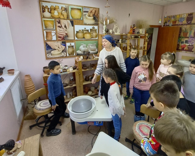 Мастера рассказали ребятам о традиционных народных ремеслах. Дети увидели, как ткут на ткацком станке и делают вазы из глины, как валяют шерсть и плетут корзины. Сотрудники учреждения культуры «Евпраксия» встретили гостей русскими народными песнями, закружили в хороводе, поиграли в традиционные народные игры.