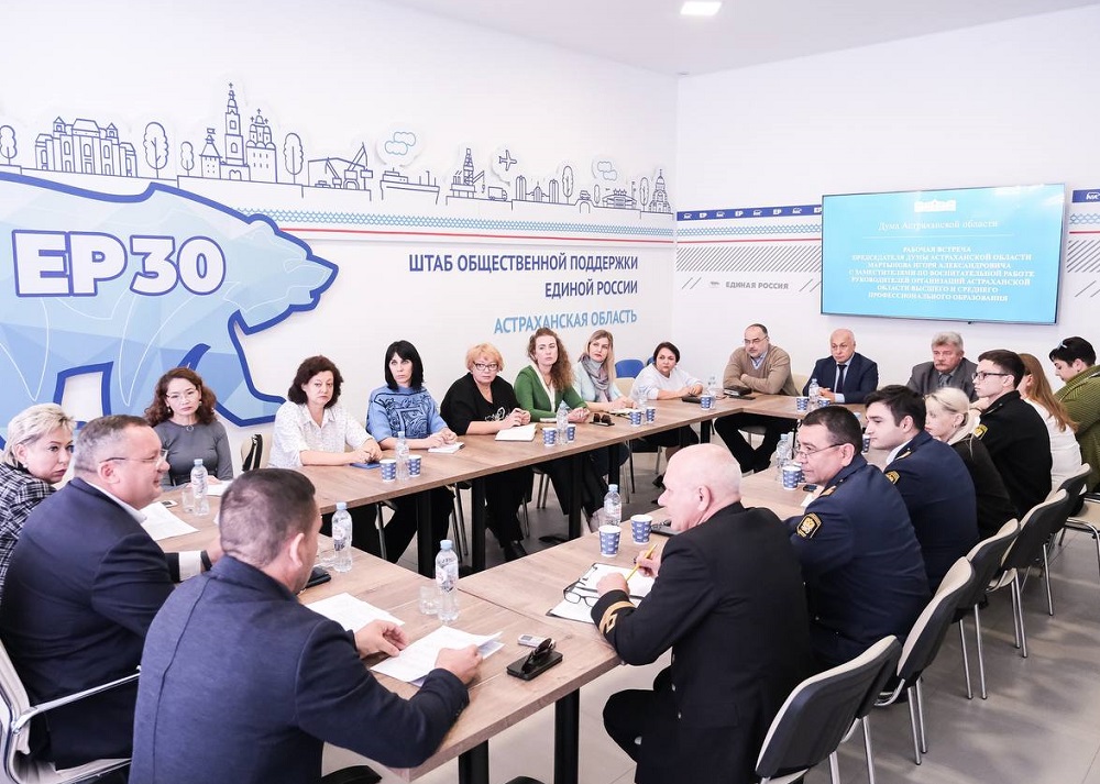 31 октября 2023 г. проректор по воспитательной работе АГАСУ Борис Полевой , заместители директоров по воспитательной работе, руководители поисковых отрядов «Дельта» колледжа строительства и экономики Анна Кожанова , «Магистраль» профессионального училища Галина Дзяба , «Поиск» колледжа жилищно-коммунального хозяйства Ольга Горностаева приняли участие во встрече с председателем Думы Астраханской области Игорем Мартыновым , которая состоялась в штабе общественной поддержки партии «Единая Россия». На мероприятии также присутствовали депутат Думы, руководитель территориального отделения Ассоциации ветеранов боевых действий специальной военной операции Денис Харитонов и начальник управления кадрового, образовательного и научного сопровождения экономики региона Ольга Тартаковская .