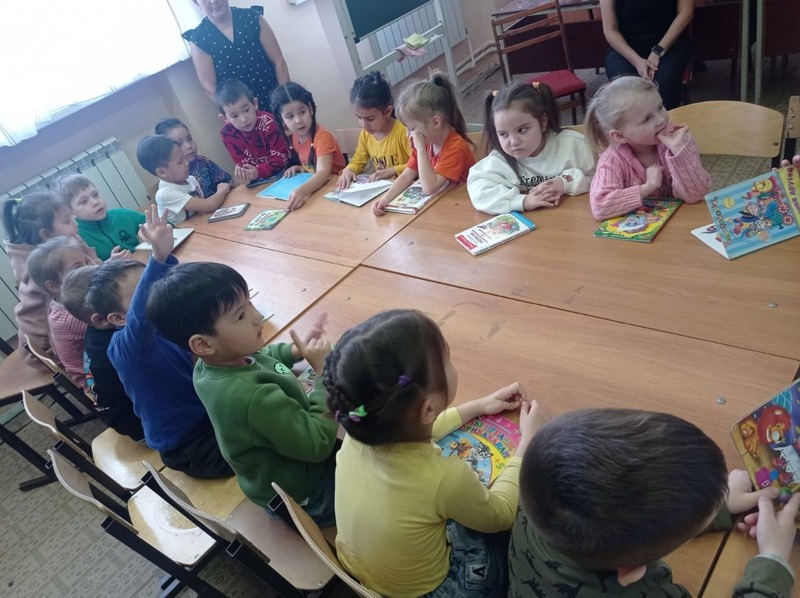 В рамках встречи дети посмотрели мультфильм «О пользе чтения», после чего библиотекарь Елена Александровна задавала вопросы, а дети с удовольствием на них отвечали. Многие ребята умеют читать. Каждый назвал свою любимую сказку.