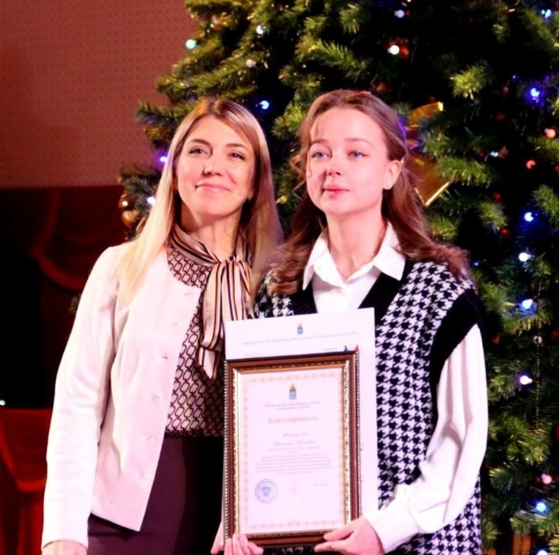 Среди награжденных была и Кристина Мишучкова из Началово. За выдающиеся успехи, целеустремленность, нестандартный подход к решению задач и высокий уровень интеллектуальной подготовки, проявленные на всероссийском проекте «Большая перемена», Мария Шалак вручила Кристине благодарность Министерства образования Астраханской области.