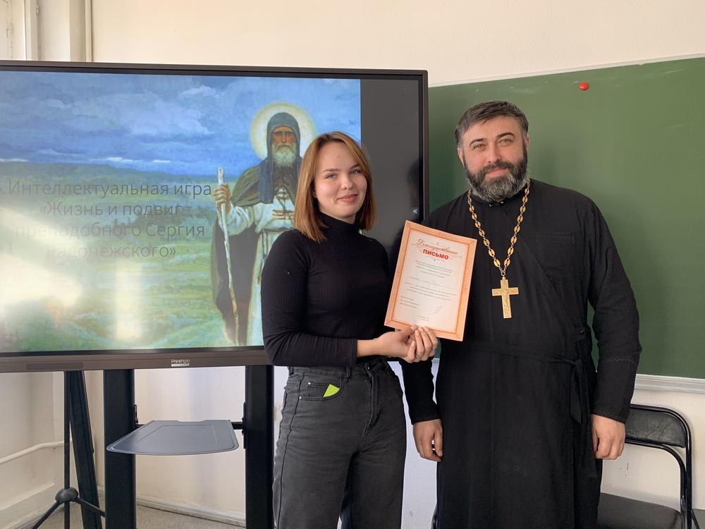 В рамках цикла мероприятий под общим названием «Духовно-нравственное патриотическое развитие человека: жизненный путь» состоялся интеллектуальный конкурс в формате брейн-ринга. Он был посвящён жизни и подвигам преподобного Сергия Радонежского.