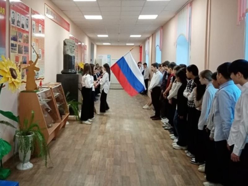 Вчерашний учебный день, как и каждый понедельник, традиционно начался здесь с общешкольной линейки с выносом Государственного флага Российской Федерации, исполнения гимна и определения планов на неделю. Её ведущими стали активисты школы – девятиклассница Арина Носкова и семиклассница Лаура Нургалиева. Почётное право вынести российский флаг было предоставлено ученице 10 класса Мадине Буранбаевой.