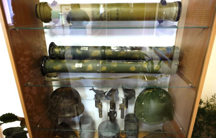 Здесь представлены экипировка вражеских и российских войск, использованные снаряжение и личные вещи военнослужащих, обломки беспилотников, гильзы от снарядов. Всё это местные волонтеры привозят с новых территорий.