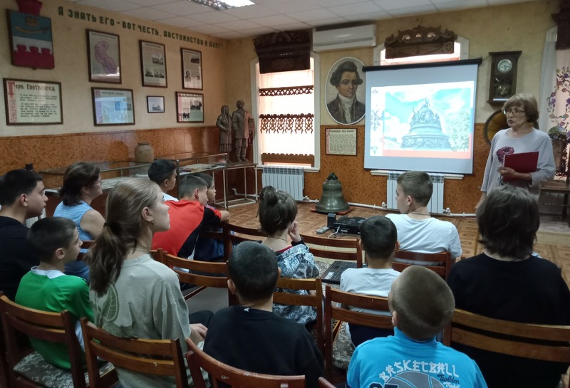 Во время встречи с ребятами научный сотрудник историко-краеведческого музея Татьяна Медведева рассказала им о зарождении российской государственности, познакомила с историческими фактами, напомнив о том, что Россия столетиями строилась как общий родной дом для людей множества национальностей, народов, которым присущи разные вероисповедания и религиозные взгляды. Татьяна Анатольевна сообщила участникам мероприятия и биографические сведения об известных, далеко за пределами района, земляках-енотаевцах, которые прославили свою малую родину в разные периоды времени.