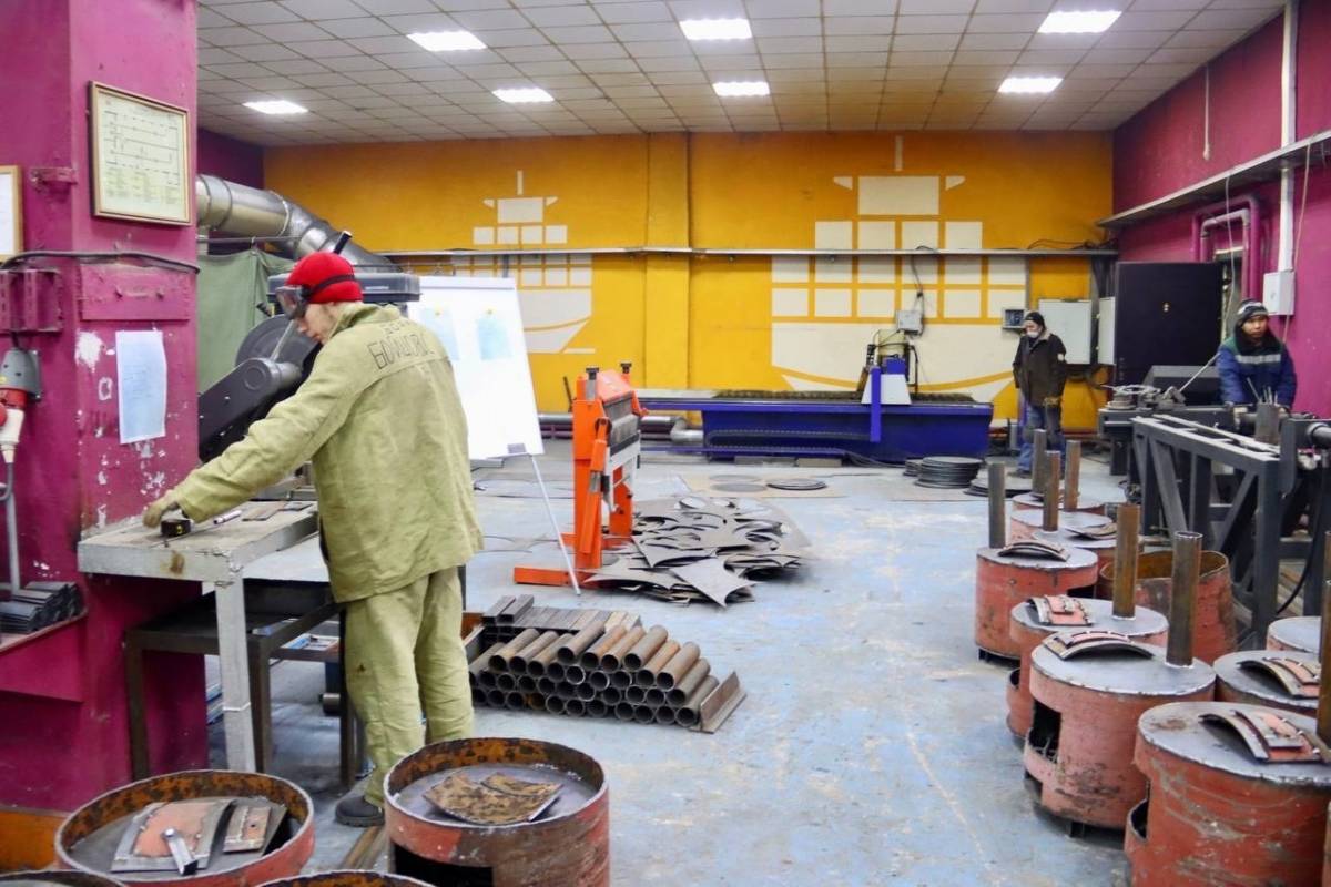 Таким серьёзным делом ребята занимаются в рамках практики в мастерской «Сборка корпусов металлических судов».