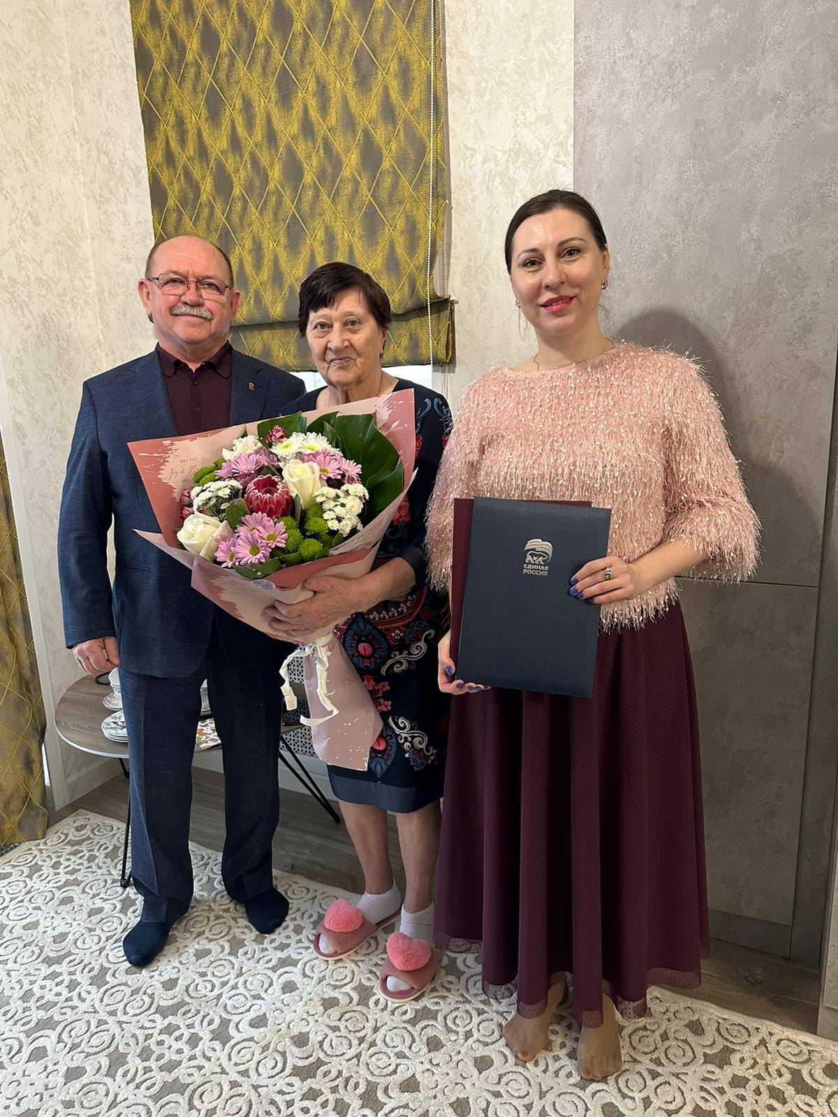 В адрес именинницы были сказаны добрые слова, поздравления с днём рождения и пожелания крепкого здоровья, слова благодарности за трудовой путь. Ветерану было вручено личное поздравление от Секретаря Генсовета партии Андрея Турчака, подарки от регионального отделения партии "Единая Россия".
