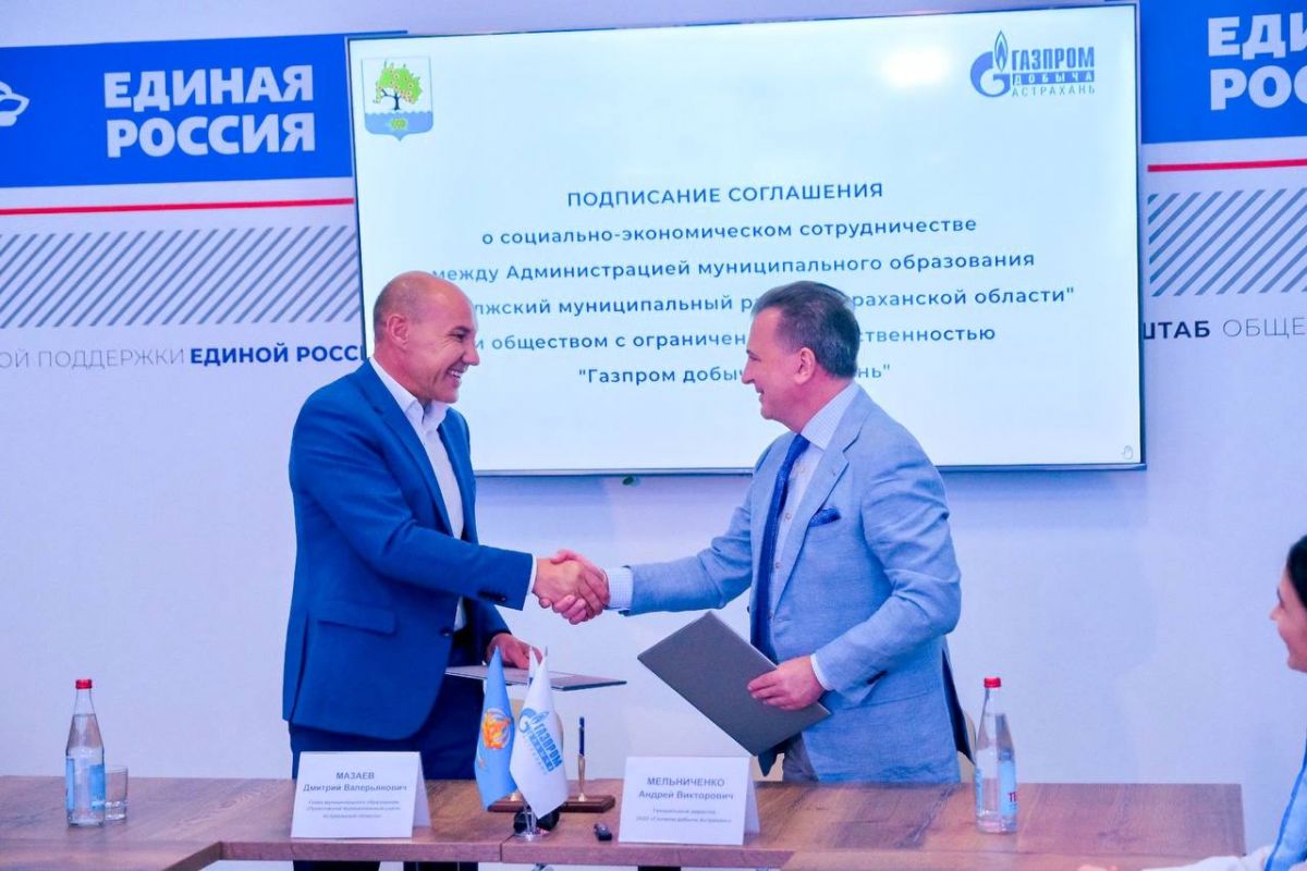 Приволжский район и «Газпром добыча Астрахань» подписали соглашение о сотрудничестве в Штабе общественной поддержки Партии «Единая Россия»