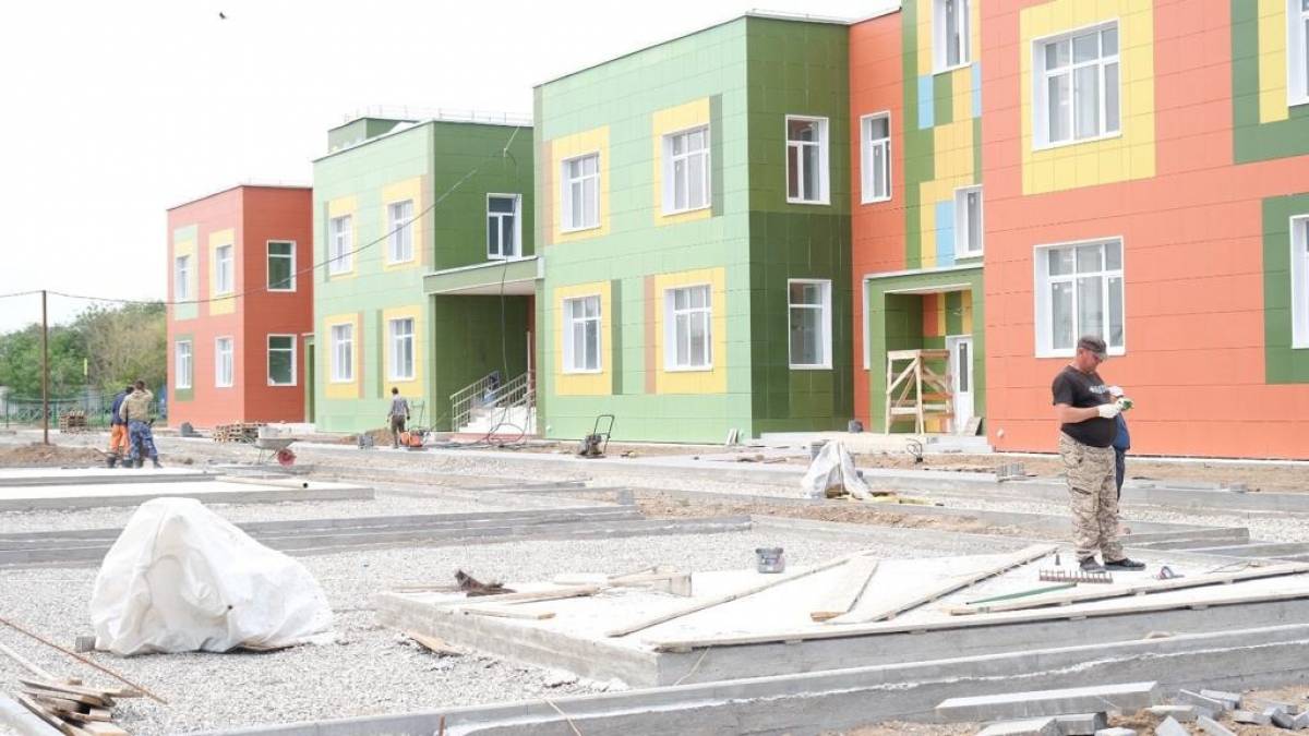 Школа на 220 мест в селе Каралат имеет высокий процент строительной готовности. Сейчас строители продолжают заниматься внутренней отделкой, обустройством футбольного поля и спортивных площадок, подведением инженерных коммуникаций.