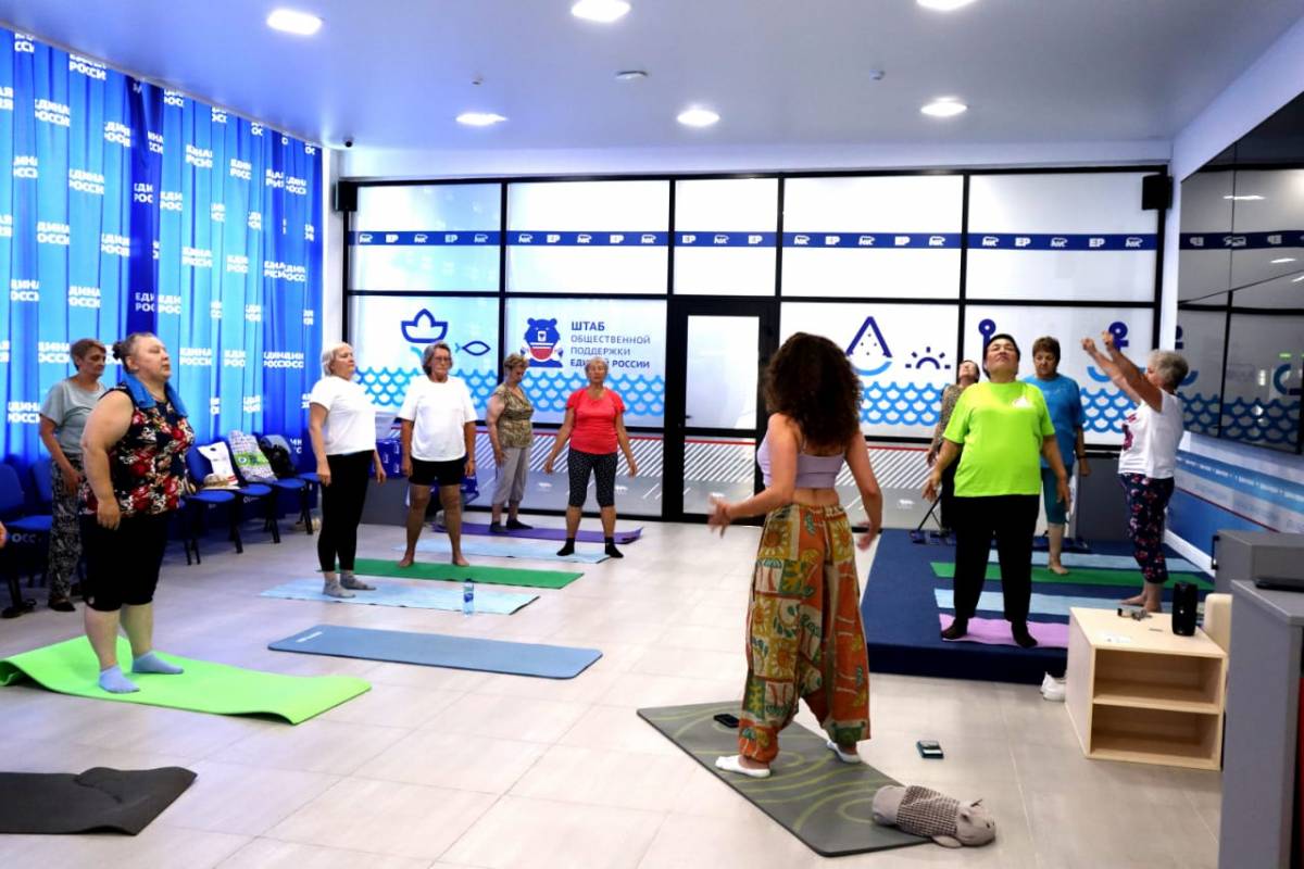 В рамках проекта «Доктор говорит» в Штабе общественной поддержки прошла очередная встреча пенсионеров - последователей физических и духовных практик - на занятии йогой.