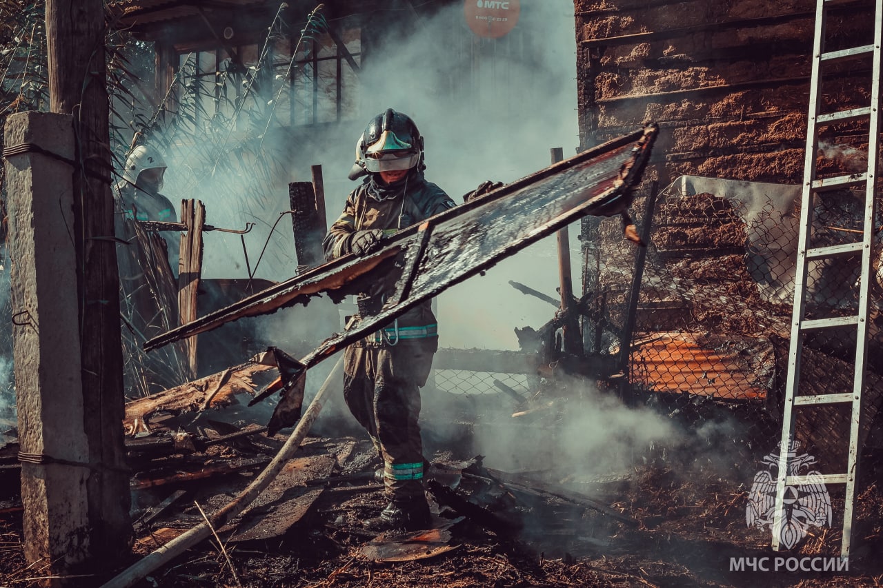 Серьезный пожар произошел в Кировском районе Астрахани. С пылающей двухэтажки огонь перекинулся на две хозпостройки. На то, чтобы с ним справиться, пожарным понадобилось пять часов.