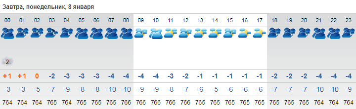 Весь день в городе будет пасмурно и морозно. Осадков в этот день в Астрахани не обещают. Ночью – примерно 0°С, но уже ранним утром столбики термометров начнут опускаться до ‑3°С. Да и днем ожидается не выше -1°С. Будет дуть преимущественно северо-восточный ветер со скоростью до 5 м/с. Атмосферное давление в этот день будет колебаться от 764 до 766 мм рт. ст. В районах региона также ожидается пасмурная погода. В некоторых местах возможен снег после 17:00. Ветер будет дуть восточный и северо-восточный до 6 м/с. Ночью – от ‑5°С до ‑2°С. Днем примерно -5°С. Наши предки замечали: если после заката 8 января небо красное, то сильно похолодает. Существовала в народе и такая погодная примета: вьюга и мороз в этот день сулят холодное лето. Напомним, новая неделя принесет с собой еще больше погодных сюрпризов. Узнать о них можно в нашем материале: Какую погоду ждать астраханцам на новой неделе Не забывайте следить за прогнозом погоды, чтобы правильно спланировать свой день и не попасть в неприятные ситуации.