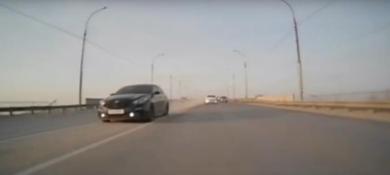 В социальных сетях опубликовали видео с участием астраханского лихача. Водитель выехал на разделительную полосу на Новом мосту на скорости. Момент с нарушением попал на видеорегистратор другого водителя. Незаконный маневр камера запечатлела с двух точек.