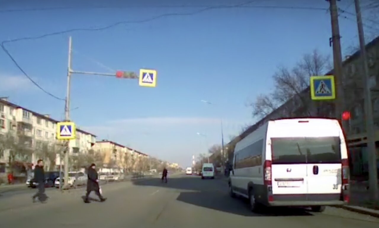 Маршрутка в Астрахани проскочила на красный перед удивленными пешеходами