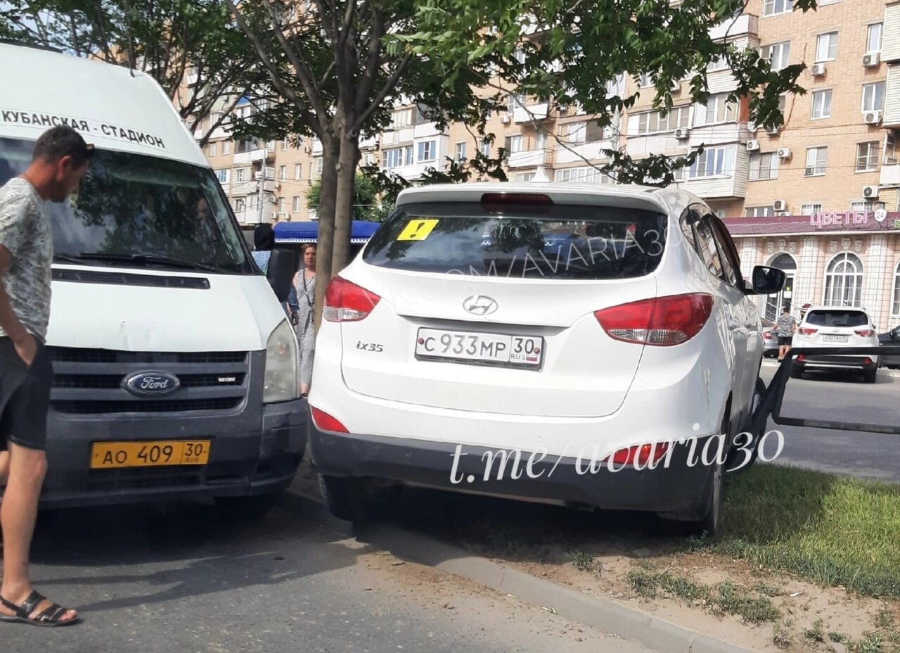 Авария с участием маршрутного такси №27, следовавшего в сторону улицы Кубанской, произошло в субботу на улице Победы. Микроавтобус «Форд Транзит» врезался в Hyundai ix35 с прикленным знаком «начинающий водитель». Легковой автомобиль после удара развернуло и он ударился в ограждение на разделительной полосе. Видео момента ДТП опубликовали в телеграм-канале «Аварии Астрахань» .