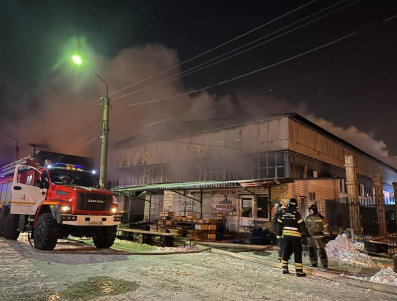 Около полуночи в Астрахани загорелись торговые павильоны Татар-базара. Видео