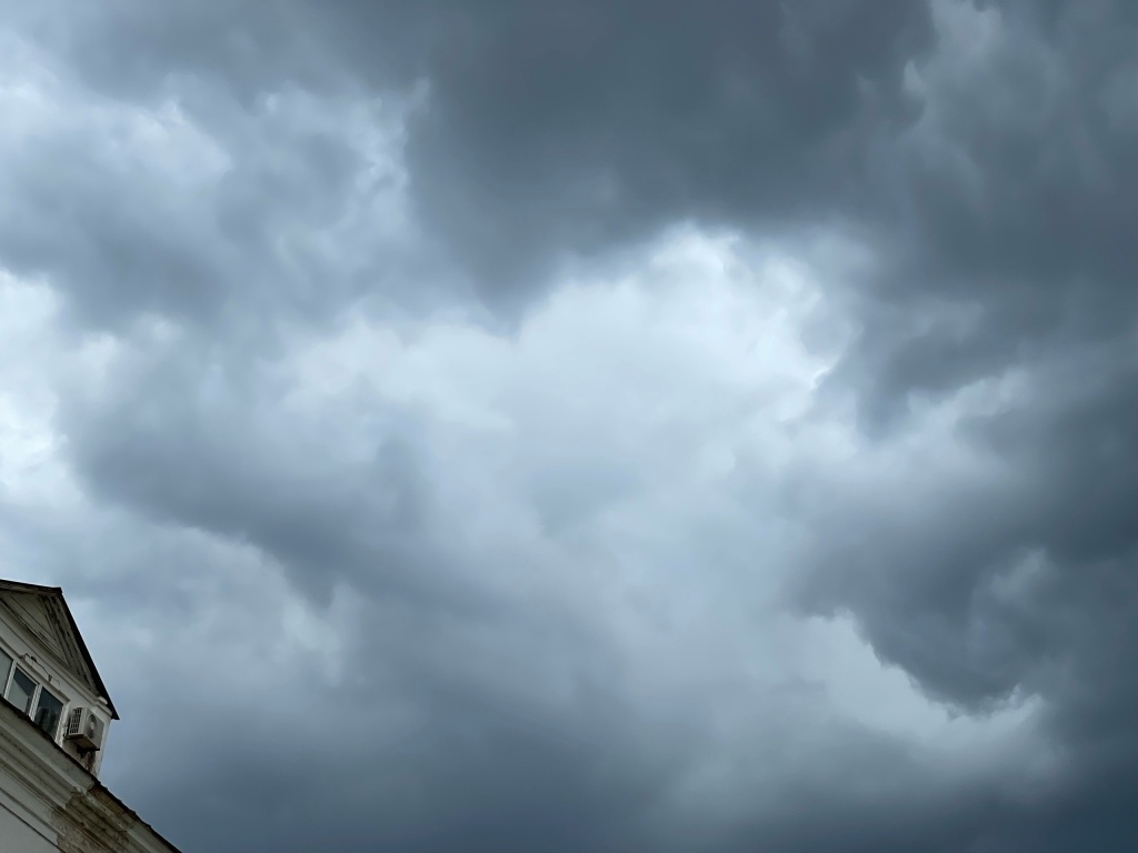 Многие жители города начали отмечать наступление сильного дождя заранее, когда начали сгущаться тучи.