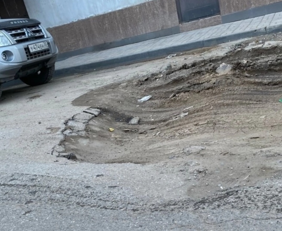 «Машинам тяжело проезжать, приходится заезжать на бордюр и то, некоторые бьются об асфальт. Ночью идти (по дороге, — прим.ред.) невозможно, даже черт ногу сломает. Яму ничем не оградили…» , — пишет местная жительница в группе «Аварии Астрахань» .