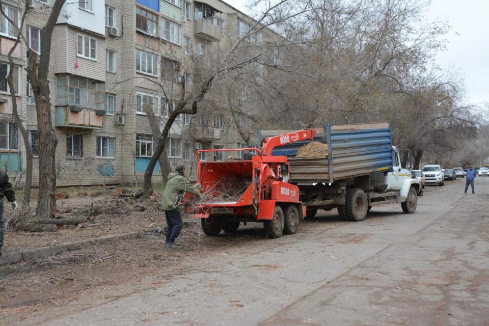 Астраханские коммунальщики ведут комплексную опиловку на улице Ахшарумова
