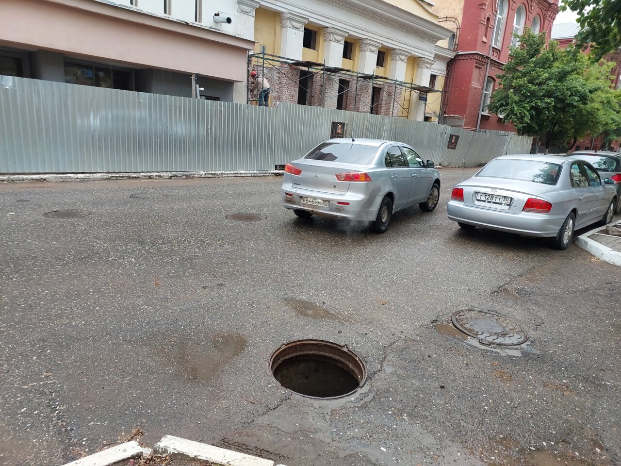 Куда делась его крышка — большая загадка. То ли она пришла в негодность, то ли приглянулась ворам. Хотя последнее странно для центра города. Наиболее вероятная версия — люк открыли для работ, связанных с реконструкцией здания кинотеатра «Октябрь». Но почему-то не поставили совсем никакого ограждения. И это самый центр города.