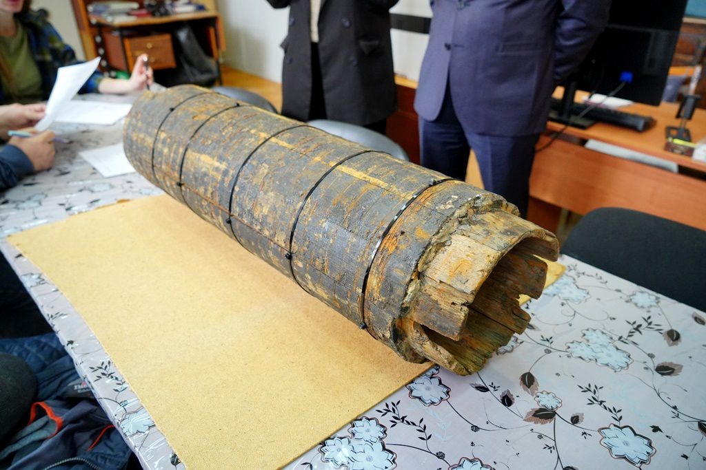 «Астрводоканал» передал в музей деревянную трубу сталинских времен из центра города