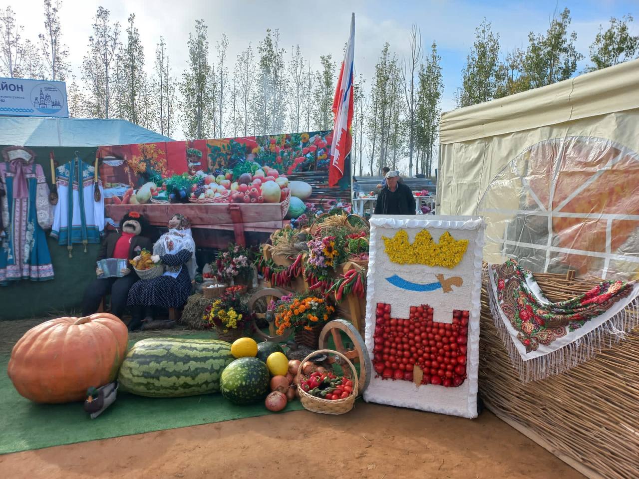 Колоритное многонациональное сельское подворье, щедро украшенное дарами полей и огородов, вручную изготовленным из природных материалов гербом Енотаевского района, овощами-гигантами привлекало всех посетителей. А артисты из Замьян, Волжского, Енотаевки и Пришиба весело встречали их песнями и танцами.