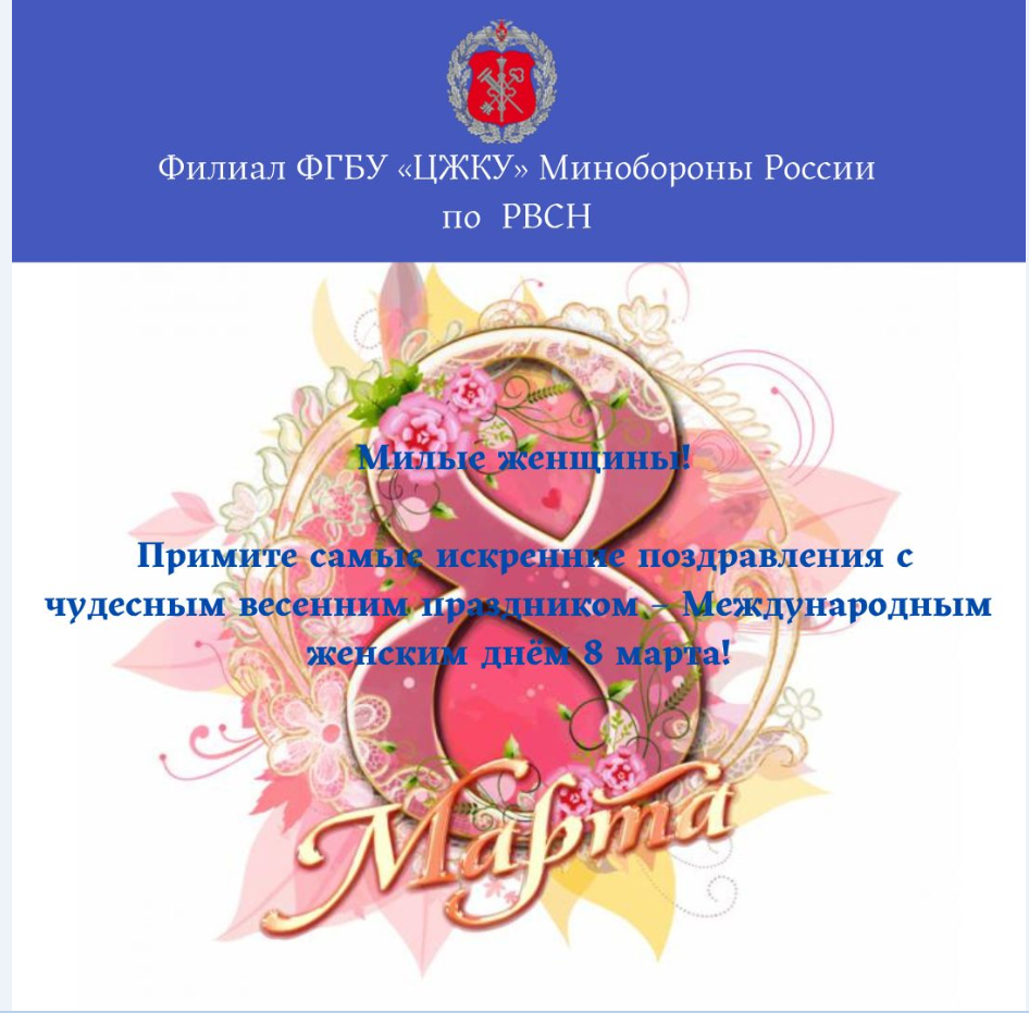 Филиал ФГБУ «ЦЖКУ» Минобороны России по РВСН поздравляет с Международным женским днём 8 марта!
