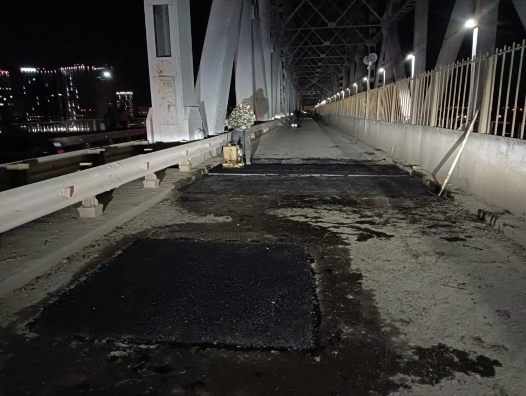 На днях на Старом мосту специалисты провели ремонт нескольких деформационных швов на полосе со стороны Трусовского района в центр города.