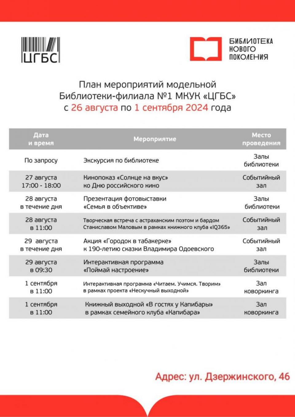 В библиотеке на ул. Дзержинского, 46 1 сентября для детей будет подготовлен интерактив «Читаем. Учимся. Творим», а также будут организованы мероприятия в рамках семейного клуба «Капибара».