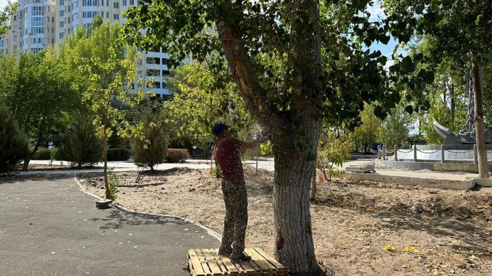 Опиловку разросшихся деревьев также провели и на Комсомольской Набережной.