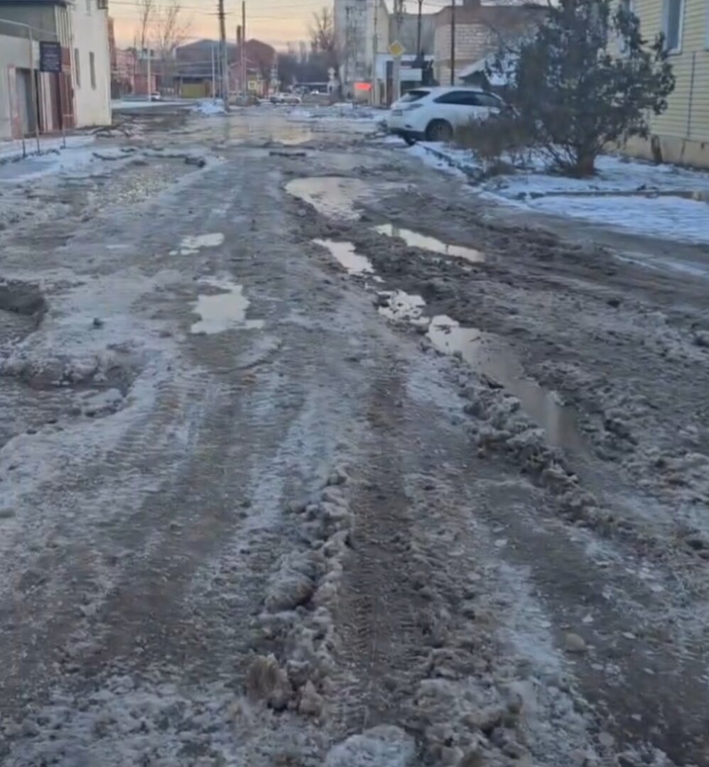 Проезд по астраханской улице Мечникова давно превратился в квест. После дождей, снегопада или прорыва канализации дорога на ней превращается в непролазное месиво. Сейчас она покрыта льдом перемешанным с грязью и глубокими ямами.