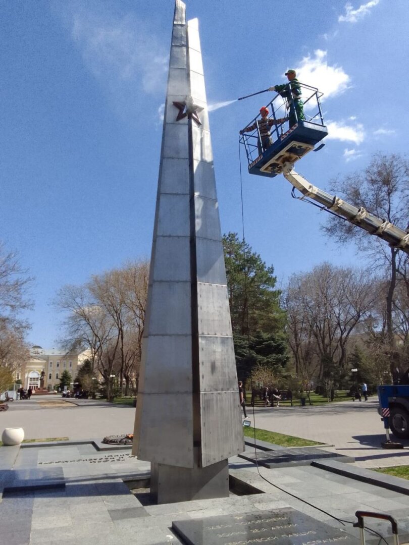 Завтра коммунальщики займутся объектами в Ленинском районе Астрахани. Для этого в случае необходимости привлекут спецтехнику. Там, где она не понадобится, мемориалы помоют вручную.