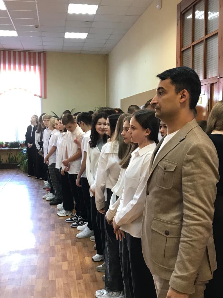 Учебная неделя в школе №30 началась с поднятия государственного флага и исполнения гимна Российской Федерации. После линейки старшеклассники поспешили на «Разговоры о важном» — так назывался открытый урок, который провел для школьников председатель Городской Думы Игорь Седов.