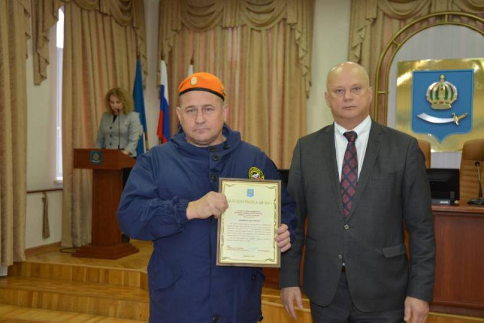 Глава Астрахани Олег Полумордвинов вручил почетные грамоты и благодарственные письма администрации города сотрудникам муниципального аварийно-спасательного центра,