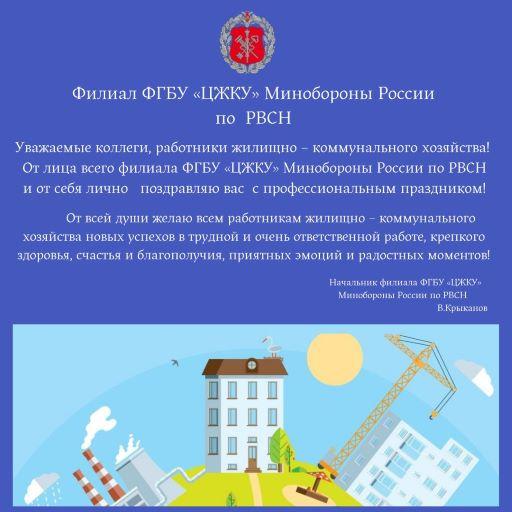 Поздравление начальника филиала ФГБУ «ЦЖКУ» Минобороны России по РВСН с Днём работников бытового обслуживания населения и жилищно-коммунального хозяйства