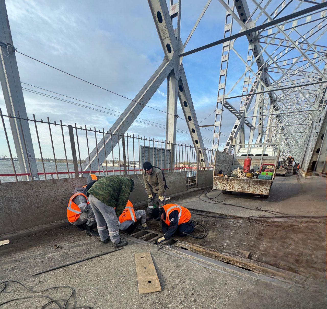 В Астрахани сегодня проводят ремонт деформационных швов на Старом мосту. На месте работают муниципальные специалисты и железнодорожники.