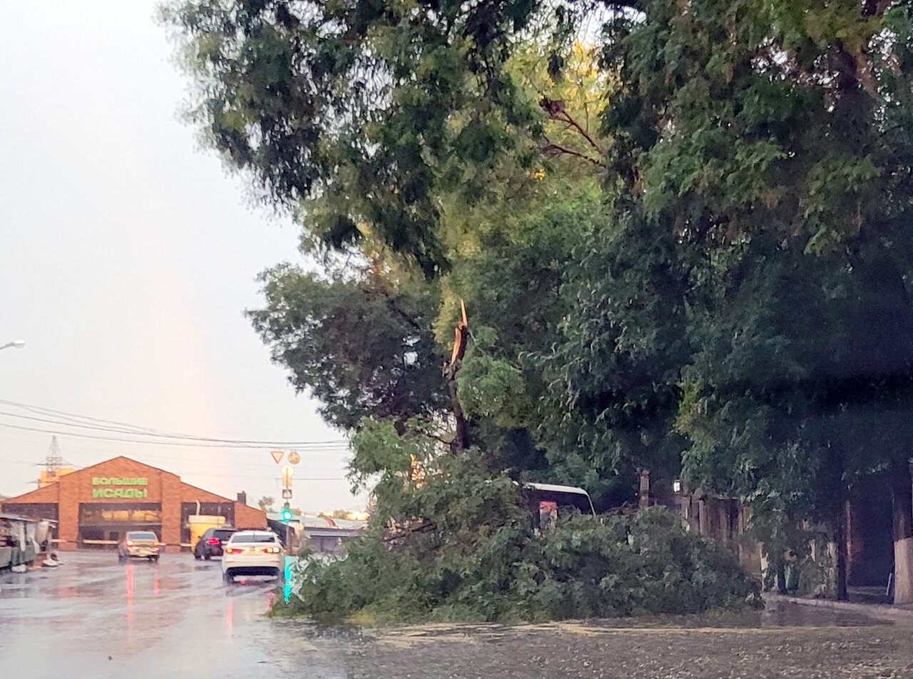 После воскресного урагана улицы Астрахани оказались залиты водой и буквально усыпаны ветками.