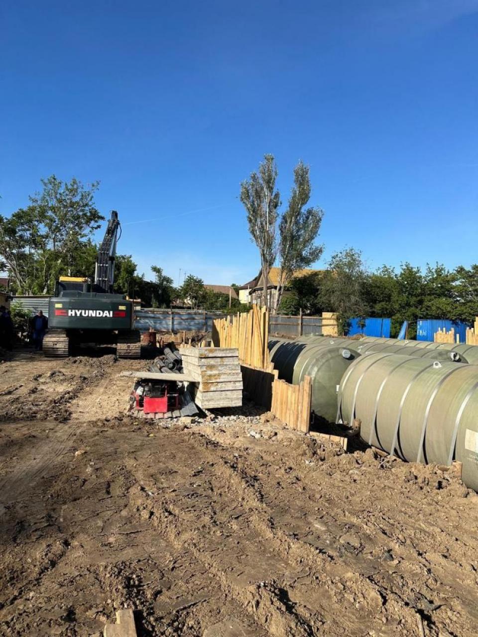На локально-очистных сооружениях сейчас монтируют накопительные емкости, производят обвязку оборудования и устанавливают насосы с последующей засыпкой сооружения подземного исполнения.