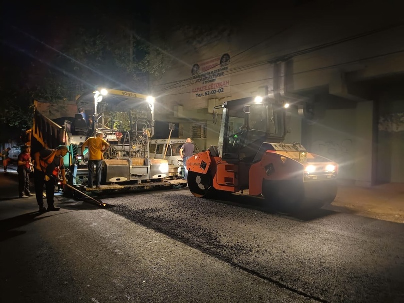 Например, прошлой ночью дорожники работали на участке от улицы Мусы Джалиля до Бэра. После укладки дорожного покрытия начнется демонтаж бордюров и обустройство тротуара. Всего на улице Шаумяна задействовано 10 единиц спецтехники и 20 рабочих.